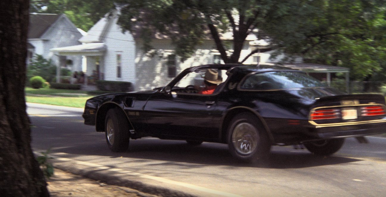 At approximately 2pm Burt drives the Trans Am out of the trailer and stops at the base of the ramp. For movie goers, this is the reveal of the new 1977 Trans Am Special Edition. Jerry Reed ad-libs the famous line "Honey Hush!" as the car rolls out. We refer to this car as Trans Am #1. It is kept in pristine condition for most of the filming and is used for most of the exterior shots of the Trans Am.