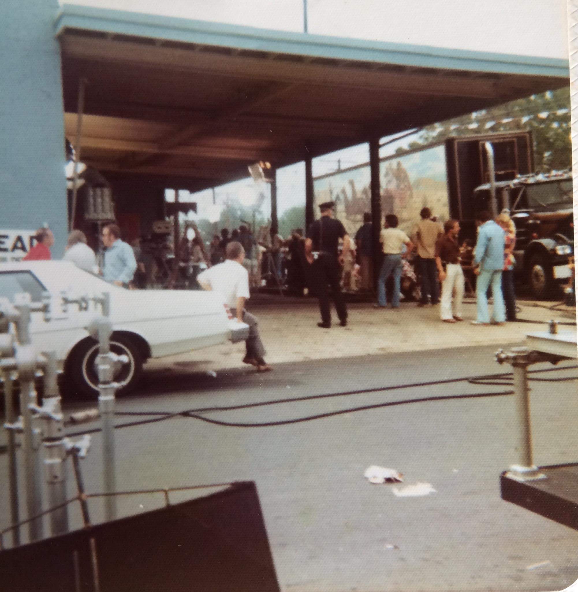Filming started early in the morning. Just as the scene was supposed to represent. The Trans Am used for this scene we refer to as Trans Am #1. This was the same Trans Am that was used at Snowman's House. Now we see an extra detail about it; one of its high beam headlights is out.